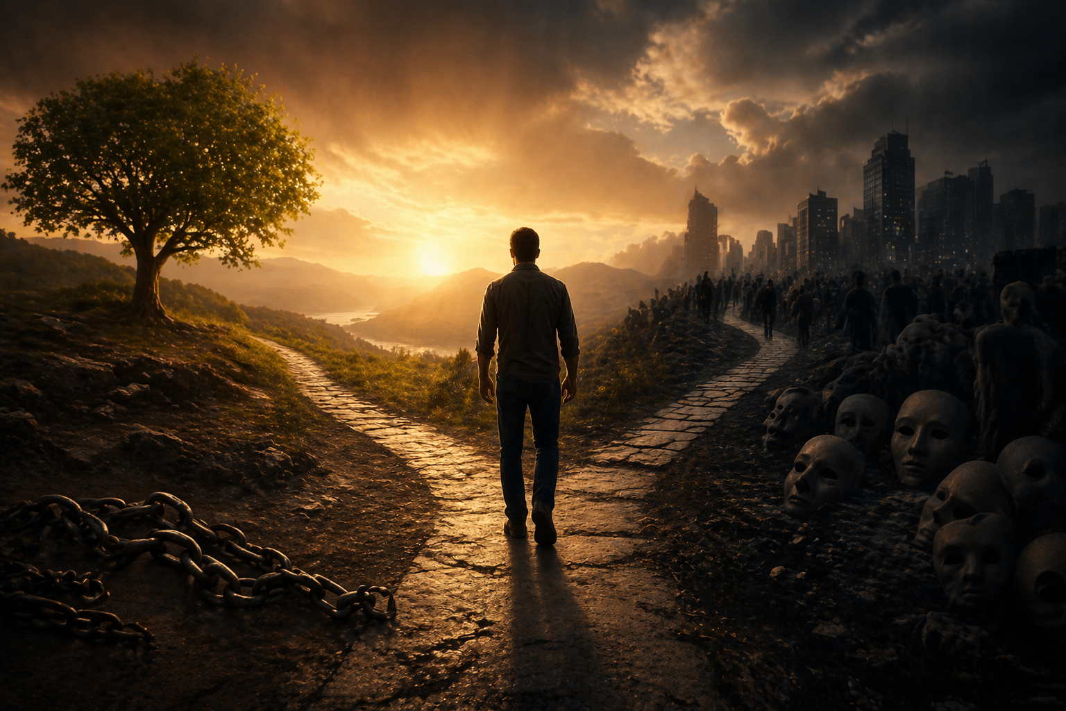 O mundo contemporâneo é um banquete de máscaras onde a entrada custa a alma. Para sentar-se à mesa do sucesso fácil, da aceitação política ou do pertencimento religioso, exige-se o sacrifício do eu no altar da conveniência.