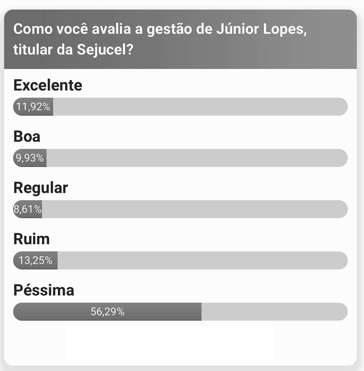 “É importante destacar que, de acordo com uma pesquisa realizada pelo site Rondônia ao Vivo, a avaliação da gestão atual por parte da população é alarmante. Quase 70% dos entrevistados classificaram o trabalho da Secretaria de Esportes como ‘ruim’ ou ‘péssimo’. Essa insatisfação expressiva reflete a frustração da comunidade com a falta de ações efetivas e resultados palpáveis no desenvolvimento do esporte no estado, indicando uma desconexão preocupante entre a gestão e as expectativas dos cidadãos.”