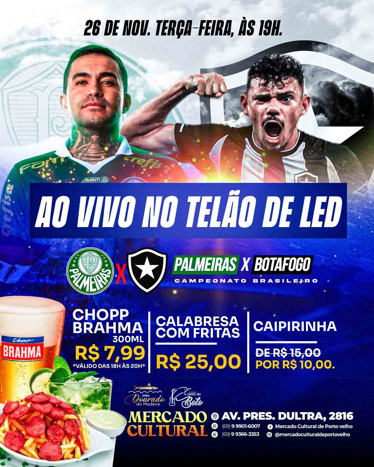 “Além dos shows, iremos montar telões de Led para as transmissões dos dois jogos do Botafogo, o de hoje, contra o Palmeiras, pelo campeonato Brasileiro, e de sábado, contra o Atlético MG, final da Libertadores”, comunicou o empresário Sinésio Tapajós, permissionário do box Dourado do Madeira, ao divulgar as atrações musicais da semana que vão acontecer gratuitamente no Mercado Cultural.