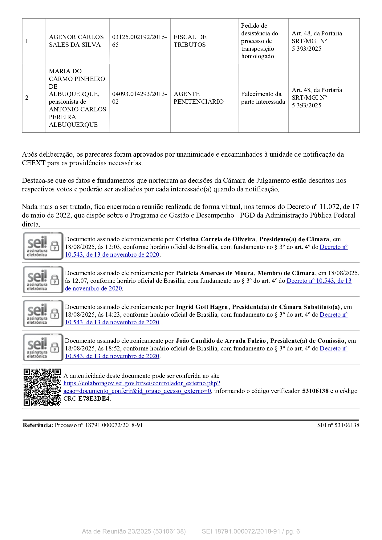 A autenticidade do documento pode ser conferida no site oficial do SEI utilizando o código verificador 53106138 e o código CRC E78E2DE4, com referência ao Processo nº 18791.000072/2018-91.